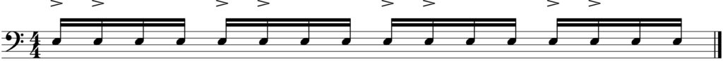 ゆっくりなテンポであれば強く叩いてアクセントを表現することも可能ですが、テンポが速くなると厳しい。なので、発想を逆転してみます。